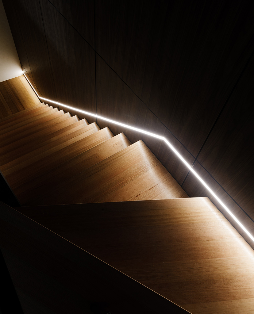 Use both surface mounted or recessed to achieve a clean, trimless finish. Suitable for joinery, stair detailing, and accent lighting applications. The restrained profile allows light to be integrated with clarity and intent within considered lighting plans.